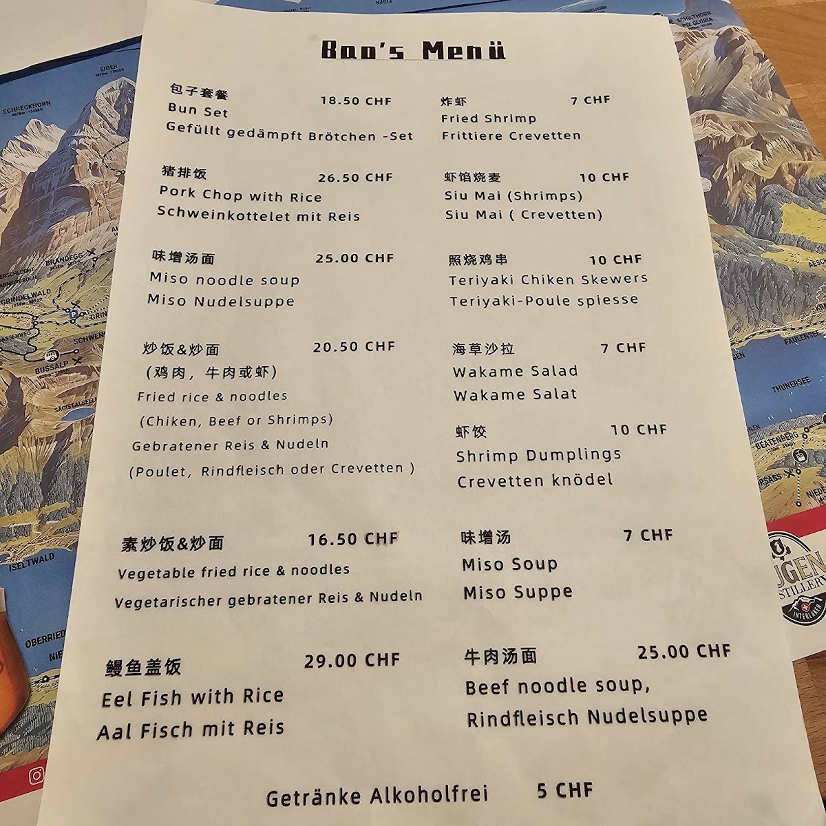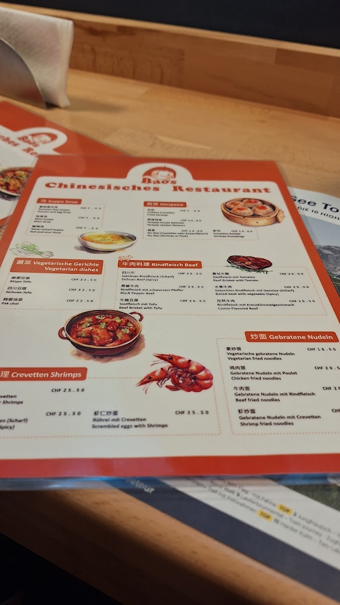 Welcome to Bao's - 3800 Interlaken, a gem nestled in Centralstrasse, just a short stroll from the Interlaken West train station. This cozy restaurant accommodates around 18 guests, ensuring a warm and intimate dining experience. The menu highlights authentic Chinese flavors, with the standout dish being the Xian Spicy Noodle—a delightful mix of thick noodles generously topped with tender beef cubes and pulled pork brisket, all harmonized by fresh vegetables. The option to enhance your meal with additional spicy sauce elevates this dish to new heights.